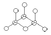 Рис. 4. Схема строения (SeO3)4. Cелентриоксид обладает настолько сильными окислительными свойствами, что окиcляет НСl до свободного хлора даже при охлаждении. Однако из раствора в жидкой SO2 он может быть выделен без изменения. Избытком серы SеО3 восстанавливается до элементарного селена, а при взаимодействии его с селеном или теллуром образуются зеленые вещества, по-видимому, аналогичные S2O3. При растворении SеО3 в Н2SеO4 образуются более или менее нестойкие пирокислоты селена — Н2Sе2О7 (т. пл. 19 °С), Н4Sе3О11 (т. пл. 25 °С с разл.). Триоксид теллура может быть получена обезвоживанием теллуровой кислоты при 300-350 °С. Образующаяся при этом желтая ТеО3 аморфна и крайне малорастворима в холодной воде (примерно 0,5 г/л). Соляную кислоту ТеО3 окисляет лишь при нагревании (в отличие от SеО3). Длительным выдерживанием ТеО3 при 406 °С был получен светло-желтый оксид состава Те2О5, переходящий в ТеО2 лишь при 485 °С. Он плохо растворим в воде но хорошо растворяется в крепком растворе КОН. Данные магнитного исследования говорят за то, что этот оксид является производным пятивалентного теллура.