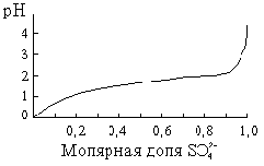 Рис. 17. Характеристика сульфатного буфера. В связи со сравнительно малым значением K2 растворы, содержащие смеси ионов HSO4– и SO42–, т. е. бисульфатов с сульфатами, обладают буферными свойствами. Общая характеристика такого сульфатного буфера дана на рис. 17. Нормальный раствор серной кислоты имеет pH = 0,3, децимолярный рН = 1,2 и сантинормальный рН = 2,1.Определения протонной активности (ан) в очень концентрированных растворах серной кислоты приводят к поразительным результатам. Так, для моногидрата она оказывается в 1010 раз большей, чем для молярного раствора. Это наводит на мысль о возможности существования в жидкостях при определенных условиях измеримых концентраций несольватированных протонов (Н+). На разложении некоторых сернокислых солей при нагревании был основан способ получения серной кислоты, применявшийся алхимиками и затем вплоть до середины XVIII века. Исходным материалом служили природные минералы, содержащие сернокислые соли железа. Последние образовывались за счёт медленно протекавшего во влажном воздухе окисления сульфидов, например, по схеме: 4 FeS + 9 O2 + 2 H2O = 4 Fe(OH)SO4 При накаливании эта соль разлагалась с образованием монооксида железа, серной кислоты и серного ангидрида: 2 Fe(OH)SO4 = Fe2O3 + H2SO4 + SO3 Разбавляя продукт перегонки водой, получали серную кислоту желаемой концентрации. Многие соли H2SO4 находят широкое техническое применение. Особенно велико оно для самой серной кислоты, громадные количества которой потребляются в промышленности — химической, нефтяной, металлургической и др. Для промышленного получения серной кислоты применяются два метода: нитрозный и контактный. Основным исходным продуктом в обоих случаях является сернистый газ, получаемый сжиганием на воздухе серы (в США) или пирита — FeS2 ( в большинстве европейских стран, в том числе и России). Частично используется также SO2 отходящих газов, образующихся при выплавке металлов (Cu, Zn, Pb и др.) из их сернистых руд. Для сжигания пирита (“серного колчедана”) на сернокислотных заводах пользуются специальными механизированными печами. Такая печь представляет собой цилиндр, разделённый по высоте на несколько соо6щающихся друг с другом отделений, в каждом из которых горящий FeS2 медленно перемешивается чугунными гребками, насажанными на общий вал. Своды отделений и гребки устроены так, что загружаемый сверху FeS2 последовательно проходит все отделения, после чего остатки от сгорания (“колчеданные огарки”) выбрасываются из печи. Воздух поступает в печь снизу и проходит вверх также через все отделения. Горение пирита идет по уравнению: 4 FeS2 + 11 O2 = 2 Fe2O3 + 8 SO2 + 3302 кДж Температура в печи достигает 800 °С. Обычный исходный газ сернокислотного производства содержит около 9 % SO2, 10 % O2 и 80 % N2. При использовании для обжига пирита воздуха, обогащенного кислородом, концентрация SO2 возрастает. Введение более богатых диоксидом серы газов в сернокислотное производство позволяет резко повысить выход серной кислоты.