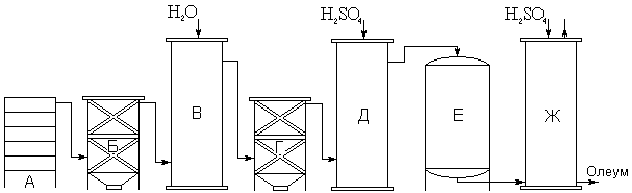 Рис. 20. Схема контактного метода получения серной кислоты.