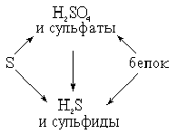 Таким образом, цикл превращений серы в природе представляет собой не просто круговорот, а вместе с тем определенный поступательный процесс, развивающийся в направлении перехода серы от более устойчивых при прежних условиях сульфидов к более устойчивым при современных условиях сульфатам.