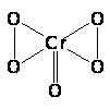 Рис. 4. Строение иона CrO83–. Соли первой из них обычно окрашены в синий, соли второй — в красный цвет. В зависимости от условий образуются те или другие. Так, осторожным добавлением 30 %-ной Н2О2 к охлажденному до 0 °С раствору К2Сr2О7 могут быть получены сине-фиолетовые кристаллы КНСrО6·Н2О, медленно разлагающиеся уже при обычной температуре. Коричнево-красные кристаллы К3СrО8 могут быть получены действием 30 %-ной Н2О2 на содержащий большой избыток КОН раствор К2СrO4. При обычных условиях они довольно устойчивы и быстро (со взрывом) разлагаются лишь выше 170 °С. Строение иона СrО83- показано на рис. 4.В водном растворе все пероксидные соединения хрома неустойчивы и быстро разлагаются с выделением кислорода и образованием ионов СгО2– (в щелочной среде) или Сr3+ (в кислой). Несколько более устойчив пероксид хрома в эфирном растворе. Реакцией его образования пользуются для открытия хрома. Обработкой аммиачного раствора хромата пероксидом водорода при 0 °С может быть получено коричневое пероксидное производное состава СrO4·3NН3, в котором хром, по-видимому, четырёхвалентен. Пероксидные производные молибдена и вольфрама отвечают преимущественно типу M2ЭОn, где n изменяется от 5 до 8. Все они производятся от шестивалентных элементов и содержат в кислотном радикале от 1 до 4 пероксидных групп -О-О-, замещающих отдельные атомы кислорода. В частности, красный Nа2МоО8 может быть получен действием 30 %-ной Н2О2 на насыщенный раствор Nа2MoО4, при 0 °С. Соединение это при нагревании взрывается, а при комнатной температуре медленно отщепляет кислород, переходя в желтый Nа2МоО6, который разлагается со взрывом лишь при нагревании до 200 °С. В водном растворе пероксидные производные молибдена и вольфрама более или менее быстро разлагаются с отщеплением кислорода. Надвольфраматы, в общем, несколько устойчивее надмолибдатов. При взаимодействии СrO3 и газообразного хлористого водорода образуется хлористый хромил (СrО2С12), представляющий собой красно-бурую жидкость. Соединения типа ЭО2Сl2 (при обычных условиях твёрдые) известны также для Mo и W. С водой все они взаимодействуют по схеме: ЭО2Сl2 + 2 Н2О Ы ЭО2(ОН)2 + 2 НСl В случае хрома равновесие практически нацело смещено вправо, т. е. хлористый хромил (подобно SO2С12) является типичным хлорангидридом. Производные Mo и W гидролизованы значительно меньше, что указывает на наличие у молибденовой и вольфрамовой кислот заметно выраженной амфотерности. В противоположность своим аналогам хлористый хромил является сильным окислителем. Продукты полного замещения кислорода триоксидов ЭО3 на галогенид характерны только для Mo и W. Очень малые количества лимонно-желтого СrF6 образуются в качестве побочного продукта при нагревании хрома до 400 °С под высоким давлением фтора (350 атм). Из-за крайней неустойчивости этого вещества свойства его пока не изучены. Фториды МоF6 и WF6 легко образуются путем непосредственного взаимодействия металлов с фтором. Для их теплот образования (в жидком состоянии) из элементов даются значения соответственно 1626 и 1722 кДж/моль. Оба они — МоF6 (т. пл. 18, т. кип. 35 °С) и WF6 (т. пл. 0, т. кип. 17 °С) — бесцветны, легкоплавки и очень летучи. В частности, несмотря на громадный молекулярный вес WF6 (почти 300), он при обычных условиях газообразен. Молекула WF6 представляет собой правильный октаэдр с атомом вольфрама в центре [d(WF) = 183 пм]. Интересно, что ег