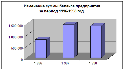 Из приведенных диаграмм и произведенных выше вычислений следует отметить: 1. По структуре активов. В 1996 году слишком маленькую часть занимали производственные запасы, что в первую очередь говорит о том, что предприятие занималось продажей под заказ, либо использовало договорные отношения и отпускала товар со склада предприятия-изготовителя. Структура активов 1997 и 1998 года практически идентичны. Поскольку весь анализ производился на основании предприятия «Торгснаб», занимающегося продажей и обслуживанием торгового и технологического оборудования, то структуру активов в 1998 году можно признать вполне приемлемой для данного вида деятельности. Желательно только увеличить долю недвижимого имущества, что поможет инвесторам более благоприятно относиться при выделении кредитов. 2. По структуре пассивов Если в 1996 году предприятие в основном пользовалось собственными средствами, то в 1997-1998 годах более половины всех пассивов составляют краткосрочные обязательства, которые фактически представляют собой оплаченный, но неотгруженный товар. Долгосрочными обязательствами предприятие не пользуется. На протяжении всего периода можно отметить только рост активов (пассивов) в 1997 году. Небольшое падение общей суммы активов (пассивов) в 1998 году с учетом практически галопирующей в период с августа по декабрь инфляции следует характеризовать как ухедшения в положении предприятия.