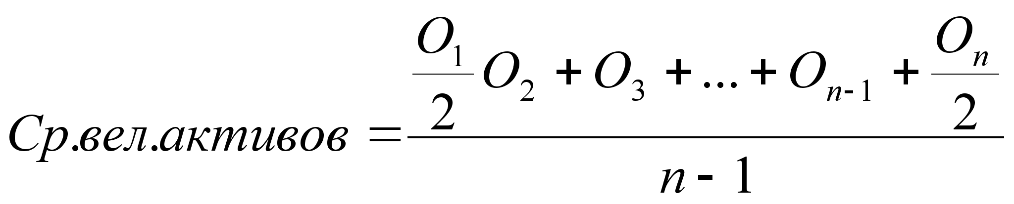 Где ОН, ОК – соответственно величина активов на начало и конец периода. Более точный расчет средней величины активов будет получен в случае использования ежемесячных данных о состоянии активов. Тогда величина активов определяется по формуле1: