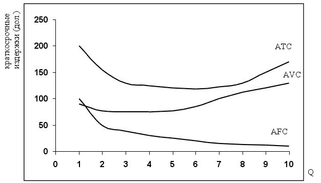 Средние общие издержки (АТС) представляют собой "вертикальную сумму" средних переменных издержек (AVC) и средних постоянных издержек (AFC). Приложение 4 Взаимосвязь между кривыми производительности и издержек