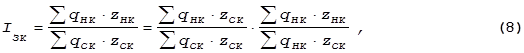 где Iзк – индекс затрат с учетом качества; qнк – расход нового по качественным характеристикам сырья, нат. ед.; qск – расход старого по качественным характеристикам сырья, нат. ед.; zнк – затраты (стоимость) нового сырья, ден. ед.;
