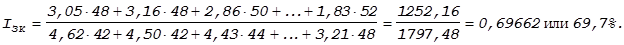 Таким образом, с учетом потребления более качественного сырья индекс затрат с учетом качества составил 69,7%, т.е. затраты снизились по сравнению с планом на 30,3% (100,0% – 69,7%).