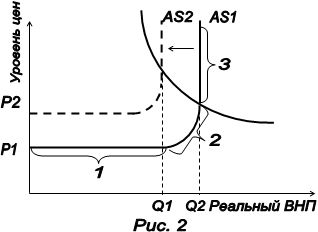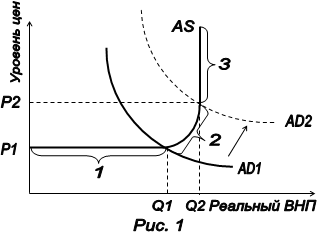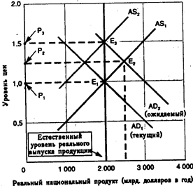 в которой пересекаются кривые совокупного спроса АD1 и совокупного