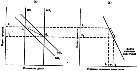 равновесия в точке Е1. Кривая предложения денег занимает положение МS1, а кривая спроса на деньги находится в положении МD1;