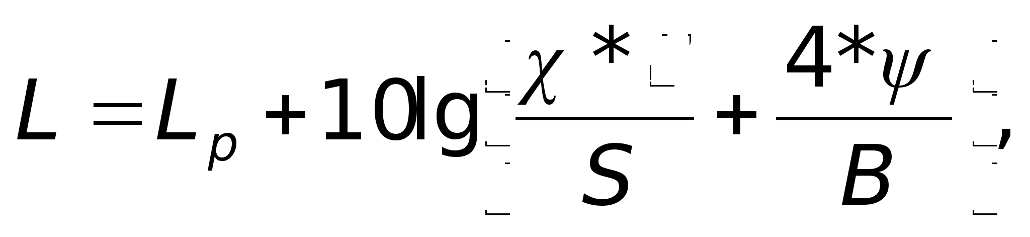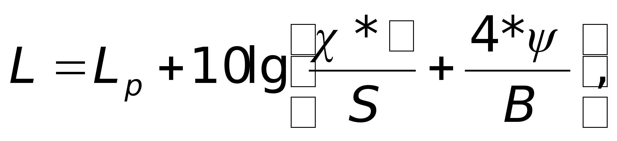 Т.к. r 2 lmax , то величина S будет определяться по формуле (5.6). S1 = r12 =2 r12 = 2 3.14 22 = 25.12; S2 = r22 =2 r22 = 2 3.14 12 = 6.28. Коэффициент находится по графику исходя из отношения r / lmax. Для r1 / lmax = 2/1 = 2, = 1. Для r2 / lmax = 1/1 = 1, = 2. Постоянную B ищем по формуле (5.2.7), а B1000 по формуле (5.8). Объём помещения равен V = M N H = 6 5 4 = 120 м2. Тогда B1000 = V/20 = 6 м2. Коэффициент определяется по таблицам из /1/ и равен 0.8. B = B1000 = 6 0.8 = 4.8 м2. Постоянную ищем по графику /1/ по отношению В / SОГР. Площадь ограничивающих поверхностей SОГР = 2 (6 5 + 5 4 + 4 6) = 148 м2. Тогда В / SОГР = 0.0324 и = 1. В итоге 1 · 1.6 4 · 1 L1 = 90 + 10lg ———— + ——— = 89.51 дБ; 25.12 4.8 2 · 1.6 4 · 1 L2 = 90 + 10lg ———— + ——— = 91.27 дБ. 6.28 4.8