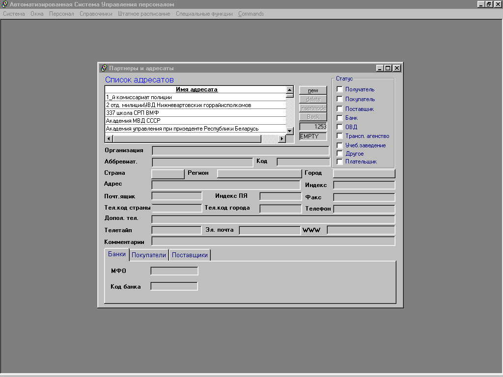 Рис 3.4. Экранная форма «Партнеры и адреса»