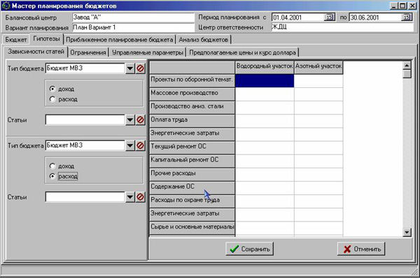 Рис. 12. Мастер планирования бюджетов по статьям бюджета21 Интегрированная система управлением предприятия «М - 2» 2 Там же 83