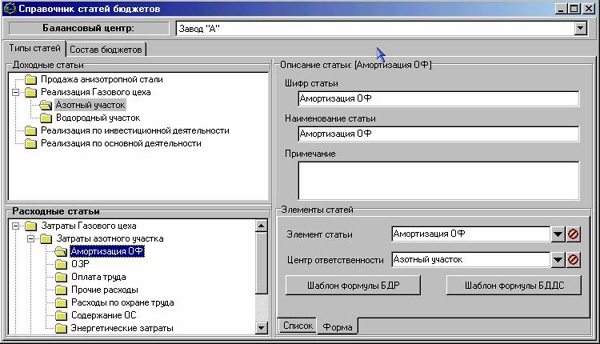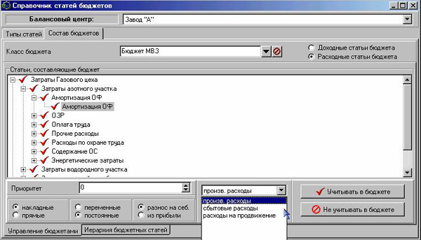 Рис. 10 Справочник состава статей бюджетов по типам2 1 Интегрированная система управлением предприятия «М - 2» 2 Там же.