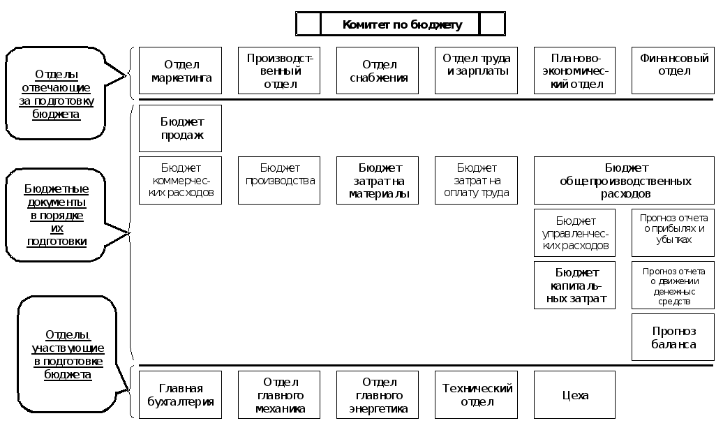 Комитет по бюджету – это составленная из руководителей верхнего звена консультативная группа, которая может включать и внешних консультантов. Комитет по бюджету – это постоянно действующий орган, который занимается тщательной проверкой стратегических и финансовых планов, дает рекомендации, разрешает разногласия и оперативно вносит коррективы в деятельности компании1. Руководство по бюджету – это набор инструкций, отражающих политику, организационную структуру предприятия, разделение прав, обязанностей и ответственности исполнителей; они выполняют роль свода правил и рекомендаций для составления бюджетных программ. В инструкциях должно излагаться, что, когда, как, и в какой форме нужно делать.