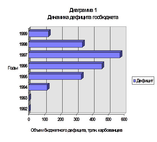 Связи бюджетного дефицита, темпов инфляции и денежной базы характеризуются данными приложение 11. Как видно из приложения 11, устойчивых зависимостей между величиной бюджетного дефицита, темпом инфляций и денежной базой не наблюдается. Правда, на самое большее сокращение реального дефицита в 1993 г. (63,9 %) приходится наибольше повышение индекса потребительских цен (47,1 %) и наибольший рост денежного предложения (в 17,2 раза). Можно допустить, что именно в этот период правительство воспользовалось инфляционным налогом для финансирования дефицита. В то же время, в 1997 г. рост и номинального, и реального дефицита бюджета происходил при почти полной стабилизации цен. В 1994 г. рост денежной базы и цен происходил на фоне роста дефицита. В дальнейшем (1995 и 1996 гг.) при значительно меньшем росте, чем в 1993 г., денежной базы (соответственно - в 2,2 и 1,38 раза) происходили относительно незначительный рост цен и сокращение реального дефицита. В отношении последнего вполне естественным является предположение об активном использовании в 1995 и 1996 гг. других (кроме эмиссии и инфляции) источников финансирования дефицита бюджета. Анализ зависимостей между дефицитом бюджета и многочисленными макроэкономическими факторами подтверждает существование многофакторных воздействий, Обосновывая показатели дефицита бюджета необходимо учитывать наибольшее количество факторов. Возможности выхода из создавшейся ситуации. Проблема бюджетного дефицита и вытекающая из нее проблема государственного долга чрезвычайно важны для сегодняшней Украины. Что же можно сделать, и можно ли вообще как-то изменить такое положение? В настоящее время сложилось две основные теории по преодолению бюджетного кризиса и кризиса государственной задолженности. Первая из них основывается на нехватке в экономике наличных денежных средств. Она была высказана недавно известным российским экономистом Николаем Шмелевым, автором нашумевшей в свое время статьи “Авансы и долги” десятилетней давности. В интервью, озаглавленном “Опять авансы, опять долги” [11] в качестве действенного метода преодоления кризиса называется эмиссия, печать новых денег. На вопрос о том, где взять не хватающие средства, Шмелев отвечает так: “Поменять всю налоговую систему - нужны годы. А их нет. ... Все деньги с внутреннего рынка государство уже высосало. А с внешнего рынка много не соберешь. Остается неестественный метод: напечатать деньги. ... Да, это немного инфляция, но это замкнутый круг, из которого иначе не выбраться. ... При том искусственно созданном денежном голоде, в котором живет страна, какие-то точечные контролируемые инъекции достаточно безопасны. Другого способа я не вижу” Такой подход аргументируется недостатком в украинской экономики наличных денег. По словам Шмелева, “в экономике должно быть наличных и безналичных денег примерно 80 % стоимости ВВП. У американцев - более 100%. У нас же - всего лишь около 10 %”. Другая же точка зрения, напрочь отрицает возможность эмиссии как средства преодоления бюджетного дефицита. “Работа печатного станка, приводящая к эмиссии, не обусловленной потребностями товарооборота, должна расцениваться как мера, грубо нарушающая законы денежного обращения, а потому недопустимая. Дефицит может покрываться только на заемной основе путем размещения на финансовом рынке госуд