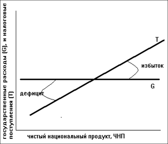 Если налоговые поступления колеблются в том же направлении, что и ЧНП, то дефициты, которые, как правило, автоматически появляются во время спадов, помогают преодолеть спад. Напротив, бюджетные излишки, которые имеют тенденцию автоматически появляться во время экономических подъемов, будут содействовать преодолению возможной инфляции.