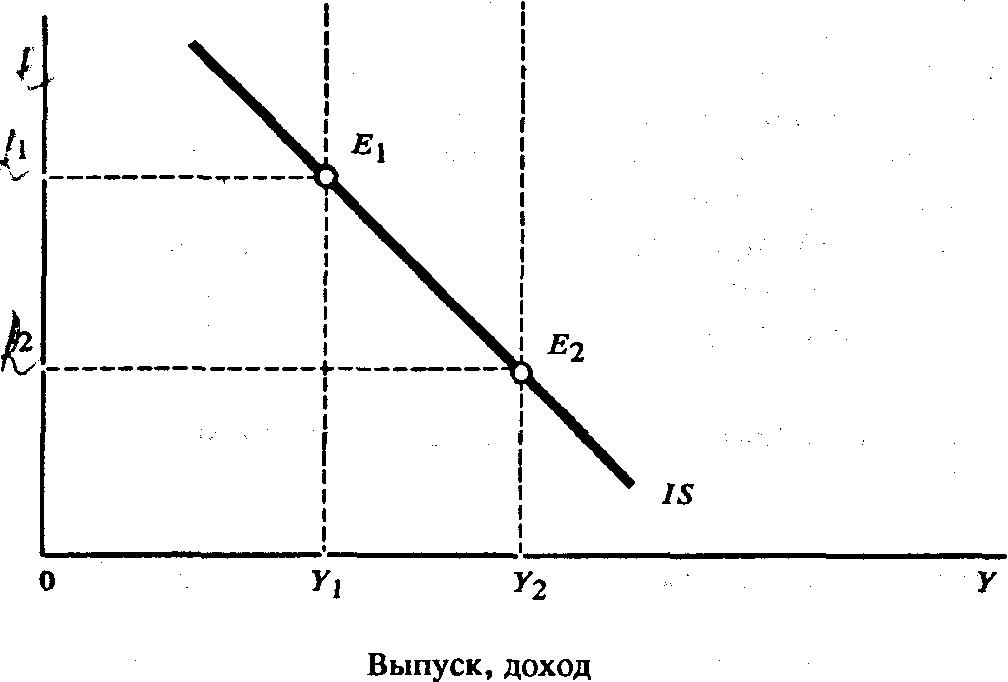 1.Кривая IS представляет рынок товаров, выражается графиком или множеством таких точек, при которых комбинация уровней процента и уровня дохода обеспечивает равновесие этого рынка. Кривая IS имеет отрицательный наклон, потому что увеличение ставки процента сокращает уровень равновесного дохода. Крутизна кривой зависит от величины мультипликатора и чувствительности инвестиционных расходов к изменениям ставки процента. Кривая IS подвержена сдвигам под влиянием изменений в автономных расходах. В точках справа от кривой имеет место избыточное предложение на товарном рынке; слева от кривой - избыточный спрос на товары.