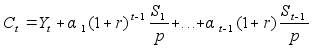 Дальнейшее развитие и модифицирование модели предложил Самюэльсон в 1958 году. Он предложил т.н. overlapping generation model without bequest (модель поколений без наследства), где рассмотрел различные типы потребителей, характеризующихся продолжительностью жизни (количество периодов), долей потребления товаров в каждом периоде и их предпочтениями в межвременном потреблении. Важной чертой модели является то, что в любом периоде могут добавляться “новорожденные” агенты, то есть для каждого агента всегда есть более молодой агент, который заинтересован в сбережениях. Простейшая модель Самюэльсона имеет вид: