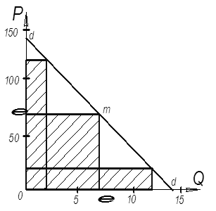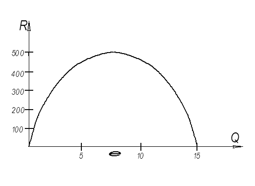 График спроса и валового дохода несовершенного конкурента. Всегда R=P * Q. Цены, назначенные фирмой, отнюдь не является предельно возможными для потребителя. Максимальный валовый доход обеспечивается не наивысшей ценой, а ценой в 74 руб.