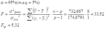 4.6. Проверьте адекватность модели (уравнения регрессии) в целом на основе F-критерия Фишера-Снедекора. Решение: Процедура статистической проверки: