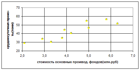 4.1. Исходные данные отложить на координатной плоскости и сделать предварительное заключение о наличии связи.