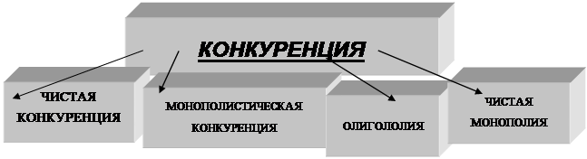 Рисунок-1 Типы конкуренций. Несовершенную конкуренцию делят на три основных типа: монополистическая конкуренция, олигополия, монополия. В развиты капиталистических странах и развивающихся странах, достигших значительного индустриального уровня (Южная Корея, Сингапур, Гонконг и другие) имеет место внутриотраслевая конкуренция между монополиями, производящими однородные продукции. В такую борьбу ввязываются сильные иностранные соперники. Конкуренция ведется и внутри каждой монополии, особенно при распределении прибыли. Особым фронтом столкновений является соперничество монополий с немонополизированными предприятиями (которые получили название «аутсайдеры»). Аутсайдеры не могут на равных бороться с крупными объединениями за более выгодные условия изготовления и реализации товаров. Высокие цены, по которым в отрасли сбывается основная масса выпущенной монополиями продукции, позволяют и немонополизированным предприятиям часто реализовать свои изделия по столь выгодным ценам. А в итоге соперничество между монополиями, так и конкуренция между последними и немонополизированными предприятиями ведут к некоторому снижению отраслевых цен. Внутриотраслевое противоборство развертывается и между немонополизированными фирмами, в том числе между массой мелких собственников. Соперничество небольших фирм возможно в виде традиционной свободной (или совершенной) конкуренции. Однако конкуренция между аутсайдерами в развитых странах охватывает лишь незначительную долю народного хозяйства удельный вес немонополизированного сектора в общем выпуске продукции сравнительно невелик. Поэтому соперничество здесь оказывает ограниченное влияние на совершенствование производства продукции. Между крупными объединениями ведется межотраслевая конкуренция, в результате которой капитал переходит из менее доходных видов производства в более прибыльные. Крупный капитал стремится укрепить свое положение в экономике путем захвата позиций в других подразделениях хозяйства. В результате усиливается межотраслевая конкуренция и подрывает позиции монополий старожилов, а установленные ими высокие цены несколько снижаются. Конкуренция между монополиями порождает обостренные формы противоборства. Так монополистические объединения могут лишить противников сырья, рынков сбыта, кредитов и т.д. Нередко применяются и недозволенные приемы (вплоть до применения динамита, физической расправы, с помощью гангстеров). Все больше используются неэкономические методы конкурентной борьбы: переманивание специалистов, финансовые махинации, борьба за правительственные заказы, промышленный шпионаж и многое другое. В современное время широко распространена неценовая конкуренция. Неценовая конкуренция. В странах Запада государство вмешивается в хозяйственную деятельность монополий. Оно устанавливает контроль за ценами, чтобы сдерживать инфляцию и регулировать уровень цен в высококонцентрированных отраслях, где сильнее всего развита монополизация. Специальные государственные органы наблюдают за ценами, объемами производства, входом и выходом из отраслей. Они способствуют выполнению антимонопольного законодательства. В результате в экономике преобладают олигополии (греч. олигос- немногий, полео – продаю), т.е. основная масса товаро