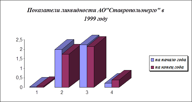 Расчет показателей платежеспособности предприятия АО"Ставропольэнерго". По результатам расчетов, представленных в таблице 8 можно сделать следующие выводы: 1. Коэффициент абсолютной ликвидности увеличился по сравнению с началом года с 0,030 до 0,061. Причиной этого послужило уменьшение дебиторской задолженности предприятия к концу отчетного периода и рост денежных средств на счетах предприятия. Как известно, все эти улучшения в сруктуре баланса произошли из за увеличения доли сбора денежных средств за выполненные работы и оказанные предприятием услуги. 2. Промежуточный коэффициент покрытия (Кпр.п.) краткосрочных обязательств или коэффициент быстрой ликвидности, хотя и снизился в сравнении с началом года с 2 до 1,76, но остается достаточно высоким при нормативе 0,7-0,8, за счет значительной дебиторской задолженности (619 453 тыс. руб.). 3. Общий коэффициент покрытия или текущей ликвидности (Кт.л.), дающий общую оценку ликвидности предприятия, показывая, в какой мере текущие кредиторские обязательства обеспечиваются материальными оборотными средствами так же в норме, несмотря на его снижение с 2,23 до 2,15, при нормативе на конец отчетного периода не менее 2 (безопасное значение). 4. К показателям платежеспособности относится и удельный вес запасов и затрат в сумме краткосрочных обязательств. Он показывает, какую часть краткосрочных обязательств предприятие может погасить за счет реализации материальных и товарных ценностей. Для предприятия АО"Ставропольэнерго" этот показатель составил 0,23 в начале года и 0,39 в конце года. Как видно, величина этого коэффициента к концу отчетного периода почти не изменилась, так как с ростом кредиторской задолженности увеличилась и сумма в статье "Запасы".
