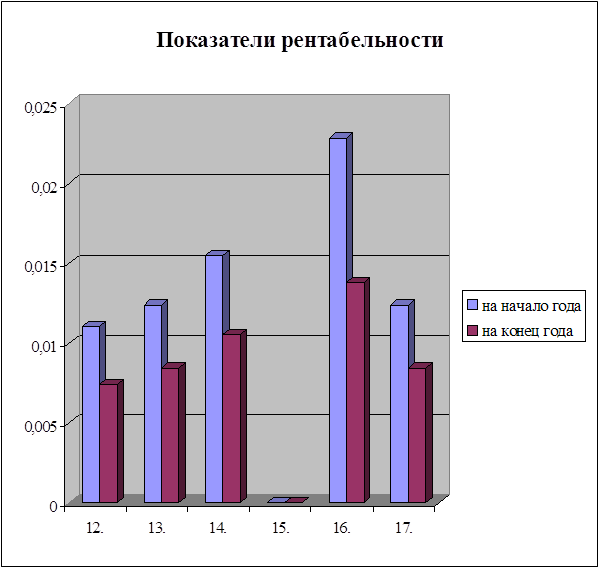 Рисунок 1. По результатам расчета показателей рентабельности можно сделать вывод об уменьшении прибыльности предприятия АО "Ставропольэнерго" и ослаблении его финансового благополучия. Об этом свидетельствуют все коэффициенты (см. рисунок 1): · Коэффициент рентабельности имущества, который показывает, сколько балансовой прибыли получено с рубля стоимости имущества, вырос с 1,5% до 0,55% чему способствовало уменьшение балансовой прибыли к концу отчетного года. · Коэффициент рентабельности собственного капитала, который показывает, сколько прибыли получено с каждого рубля, находящегося в собственности предприятия, также уменьшился и к концу года составил 0,59%. · Рентабельность производственных фондов, определяемая как отношение балансовой прибыли к сумме основных средств и материальных оборотных средств, к концу года составила 1,0%, что на 0,5% ниже этого показателя в начале года. · Рентабельность финансовых вложений в начале года отсутствовала из-за отсутствия доходов как по ценным бумагам та и от долевого участия в уставных фондах других предприятий. К концу года ситуация не изменилась и показатель рентабельности финансовых вложений составил 0%. · Рентабельность продаж уменьшился почти в два раза и составила к концу года 1,45%, что ниже ожидаемого результата из-за выплат пени за несвоевременных оплаты в бюджет и внебюджетные фонды налогов. · Показатель рентабельности перманентного капитала, который служит для оценки эффективности использования всего долгосрочного капитала предприятия, практически не отличается от показателя рентабельности собственного капитала по причине незначительного удельного веса долгосрочных заемных средств, находящихся в распоряжении предприятия АО"Ставропольэнерго". На снижение показателей рентабельности повлияла выплата предприятием штрафов за несвоевременную оплату налогов в бюджет и внебюджетные фонды, что повлекло за собой снижение балансовой прибыли. В целом можно отметить улучшение финансовых результатов деятельности предприятия. Заключение Подводя итог , можно сделать некоторые выводы о финансово-хозяйственной деятельности предприятия АО "Ставропольэнерго", его имущественном и финансовом состоянии. Прежде всего, хочется еще раз отметить отраслевые особенности предприятия АО"Ставропольэнерго", его принадлежность к Единой Энергетической Системе России, что вносит в хозяйственную деятельность предприятия ряд принципиальных особенностей. На первом плане можно выделить естественный монополизм предприятия в предложении потребителю такого товара как электроэнергия. Как следствие этого - осуществление государственного экономического регулирования деятельности предприятия в части принятия тарифных ставок по расчету за потребляемую энергию. По сути дела, предприятие находится в жестких рамках в отношении свободы планирования и регулирования своей производственно-хозяйственной деятельности. Другой отличительной чертой являются специфические особенности технологии производства, распределения и потребления энергии при ограниченных возможностях ее аккумулирования. В их основе лежит высокая степень концентрации сложных и дорогих видов энергооборудования и сооружений, требующих значительных амортизационных отчислений на их воспроизводство, поддержание в высокой э