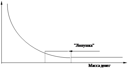 Рис. 1. «Ловушка ликвидности» 3. Перераспределение доходов в интересах социальных групп, получающих наиболее низкие доходы. Такая политика была призвана увеличить «спрос» этих социальных групп, повысить денежный спрос массовых покупателей. Склонность к потреблению в обществе должна увеличиться. 4. Политика полной занятости, направленная на недопущение значительной безработицы, на расширение системы социального обеспечения. Предлагался комплекс мер социального характера, включая выплату пособий, развитие системы долгосрочного кредита и т. д. В качестве главного инструмента Кейнс рассматривал бюджетную политику, в том числе расширение расходов и инвестиционной деятельности самого государства. Косвенные методы регулирования, в частности снижение процентной ставки, считались малоэффективными. Подолжателей работ ученого называть неокейнсианци. Ярким примером разработок этих ученых является модель Самуэльсона—Хикса, которая включает в себя только рынок благ. Модель разработана для идеализированных условий (предполагается частная экономика без внешнего рынка и т. д.), весьма проста. Она позволяет выявить четыре важнейших сочетания величин акселератора и склонности к потреблению. Каждое сочетание определяет особую динамику производства. Причём одно сочетание может определять экономический рост с колебаниями, а другое – нисходящую динамику производства с колебаниями.