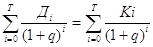 где Ч - чистый приведенный доход за жизненный цикл проекта; Дi - величина дохода в i-м временном интервале; Ki - величина инвестиционных платежей в i-м временном интервале; Т - количество временных интервалов в жизненном цикле проекта; qн - норматив дисконтирования затрат и результатов проекта, принимаемый на момент начала его жизненного цикла; qг - гарантированная норма получения дивидендов на вложенный капитал в надежном банке (в долях от единицы); qc - страховая норма, учитывающая риск вложений (в долях от единицы), а также наличие и полноту страхования инвестиционной деятельности; qо - минимальная граница доходности проекта (в долях от единицы), которая может устроить предпринимателя. Норматив дисконтирования затрат и результатов проекта вычисляется по формуле: