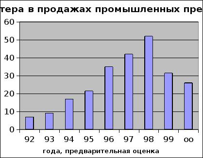 Отрицательно повлияли на экономику СССР в горбачевские времена такие факторы, как падение мировых цен на нефть, чернобыльская катастрофа, землетрясение в Армении, этнические конфликты и национальный сепаратизм. Конечным итогом был развал СССР и кардинальный пересмотр экономических отношений во всех бывших соцстранах. Подобную трансформацию общественных отношений в мире стали называть «переходным периодом». В странах Восточной Европы этот процесс шел очень быстро (не без потрясений), но все же удачно, довольно скоро была достигнута макроэкономическая стабильность, вскоре туда потекли иностранные инвестиции. Уже после 1992 г. в Польше, Чехии, Венгрии, Словакии среднегодовой рост экономики составлял уже 5%. В странах СНГ наблюдался совершенно обратный процесс. После развала СССР Россию захватили поток беженцев, разгул преступности, опасные сепаратистские тенденции во многих ее частях, неплатежи зарплаты, рост цен и многое другое. Реформы в Российской Федерации проходили в гораздо более тяжелой форме. В стране разразилось инфляция, наблюдался устойчивый спад экономики, росла доля бартера в хозрасчетах, к тому же непоследовательная позиция правительства вызвала глубокий кризис в обществе. В целом можно выделить 4 этапа в истории «переходного периода» в России после 1992 г. Первый этап: 1992-1994 гг. Это этап кризисного развития, отличавшийся большим спадом производства, особенно инвестиций. Составляющие спада: быстрая демилитаризация экономики и резкое сокращение военного производства, прекращение производства товаров гражданского назначения, не пользовавшихся внутренним спросом, развал СССР и СЭВа приведший к разрушению важных внешних для России рынков, и, наконец, нарастающие трудности, связанные с реальной системной трансформацией страны. Второй этап: 1994-1996 гг. Стала деформироваться нормальная рыночная инфраструктура, началось кредитование экономики по положительной процентной ставке (раньше она часто была отрицательной). В 1995 и 1996 гг. удалось серьезно ослабить инфляцию. Однако спад производства правительство преодолеть не смогло. Во внешней торговле страны тем не менее образовалось устойчивое положительное сальдо. Третий этап: 1996-1998 гг. Главным вопросом стала проблема возобновления экономического роста. Была заметно снижена инфляция. На передний план вышли проблемы реформ на микроуровне, прежде всего на уровне предприятий. Но события 1998 г. вызвали новую волну спада. На новом этапе с 1999 по 2003 гг. были достигнуты значительные успехи в экономике постсоветской России. Этот период характеризуется достаточно высоким ростом экономики (более 5% в год). В бюджете был достигнут устойчивый профицит. Внешнеторговое сальдо находится на уровне 30-50 млрд. долларов в год. Правительство России практически полностью отказалось от внешних заимствований. Впервые в истории страны Российской Федерации был присвоен инвестиционный рейтинг. В нашей работе мы рассмотрим последний этап в истории переходного периода экономики России. Итоги 1999 года выглядят следующим образом. Доллар, который в январе стоил приблизительно 23 рубля, в декабре продавался примерно за 27 рублей. Таким образом, держатели долларовых активов немного разбогатели. Впрочем, все остальные товары, кроме доллара, подорожали за год, по официальным данным, на 40%, а по неофиц