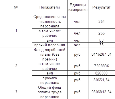 Фонд заработной платы вспомогательных рабочих составляет 80% от фонда оплаты труда основных рабочих, а сумма премий по фонду заработной платы – 20% от суммы премий основных рабочих. Заработная плата руководителей, специалистов и служащих (АУП) находится исходя из средней месячной заработной платы, принятой в регионе. Прочие категории работников оплачиваются в двукратном размере величины минимальной оплаты труда за месяц. Фз/п раб. = Зтар. + Nсу + Зпр. (3.15) Фз/п раб. = 6952626+556210+1390525,2 = 8899361,3 Фз/п впом. = Зтар./Ро*Рвсп*0,8 = (6952626/242)*24*0,8 = 551613,3 Премии впом. = Зтар./Ро*Рвсп*0,2 = (6952626/242)*24*0,2 = 137903,3 Зауп = Зсрмес*12*Чауп = 1300*12*53 = 826800 Зп.п. = Зminмес*Чпп*12*2*Кпоясн. = 83,49*35*12*2*1,15 = 80651,34 Таблица 3.6 Расчётные трудовые показатели предприятия