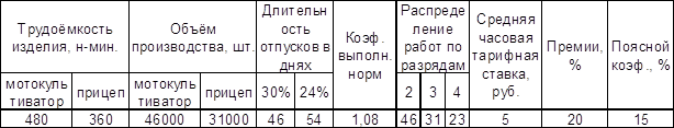 Дотпусков =(30%*46+24%*54)/100 = 27 Тср раб. дня = (Фном. - Дпредпр.)*8 + Дпредпр.*7 (3.1) Тср раб. дня = ((303-7)*8+7*7)/303 = 7,98 Фэф. = Фяв. * Тср раб. дня (3.2) Фэф. = 266*7,977 = 2121,85 3.2 Расчёт численности рабочих Таблица 3.4Расчёт трудоёмкости производственной программы предприятия