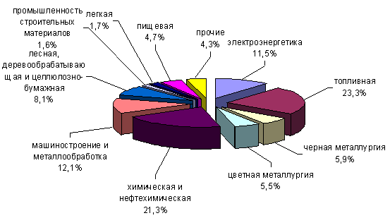 Лесные ресурсыОсновным типом растительности на территории Пермской области являются леса, занимающие 71% территории. Основные породы деревьев - темнохвойные: ель и пихта. При этом ель явно преобладает. Наличие богатых минерально-сырьевых ресурсов, их разнообразие сформировали широкий спектр отраслей промышленности. 4. ПромышленностьПермская область относится к числу индустриальных регионов России. По итогам работы в январе-июне 2000 года ИФО произведенной продукции по всей промышленности составил по отношению к аналогичному периоду прошлого года 117,3 %. Рост объемов производства к уровню прошлого года отмечается на предприятиях топливной промышленности (за счет нефтедобывающей, нефтеперерабатывающей и газовой отраслей), черной и цветной металлургии, химической и нефтехимической промышленности, машиностроения и металлообработки, лесопромышленного комплекса, легкой и пищевой промышленности. Доля основных отраслей промышленности Пермской области в 1 полугодии 2000 года в объеме производства продукции в процентах (по крупным и средним предприятиям)