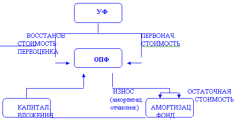 Износ рассчитывается по нормам амортизационных отчислений. В состав ОПФ включаются: средства труда и орудия труда, то есть здания, сооружения, передаточные устройства, рабочие и силовые машины, оборудование, хоз. инвентарь. ОПФ переносят свою стоимость на затраты производства постепенно, в течение нескольких производственных циклов. Эта величина называется износом ОПФ и рассчитывается в соответствии с нормативами амортизационных отчислений. Сумма амортизационных отчислений, накопленная в течение определенного периода, называется амортизационным фондом. Норма амортизации - величина, обратная сроку работы оборудования. ОПФ называется устойчивые активы. Устойчивые пассивы отражают величину уставного фонда. Часть уставного фонда - стоимостная оценка ОПФ, другая часть - оборотных фондов. Источниками