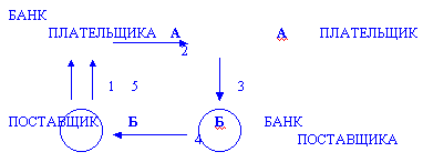 1. Поставщик направляет в адрес плательщика товарные документы(фактуру). 2.Плательщик выписывает платежное поручение в адрес своего банка. В ряде случаев вместо фактуры употребляется сам договор. 3. Банк плательщика перечисляет в адрес банка поставщика необходимую сумму денег. 4. Получение денег поставщиком. 5. Отгрузка товара плательщику. 5. Расчеты с помощью чеков. Чек - это приказ банку плательщика оплатить определенную сумму, которая указана в чеке. Для того чтобы была выдана чековая книжка предприятие пишет заявление в банк с просьбой о выдаче чековой книжки (операция 1). Если у предприятия достаточно средств на расчетном счете, то банк удовлетворяет эту просьбу(операция 2), депонируя средства плательщика на отдельном балансовом счете. Получатель едет к поставщику, оплачивая чеком товар который ему нужен(операция 3). Поставщик поставляет товар(операция 4), направляя реестр чеков в обслуживающий его банк(операция 5). Банк зачисляет на счет поставщика суммы, указанные в реестре чеков(операция 7). Банк поставщика выставяет платежное поручение банку плательщика на оплату чеков. Банк получателя пересылает банку поставщика сумму, указанную в чеке(операция 8), списывая с отдельного банковского счета эту сумму.