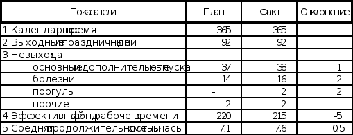 Важной составной частью анализа производительности труда является анализ использования рабочего времени, приведенный в табл. 3. Таблица 3 Анализ использования рабочего времени