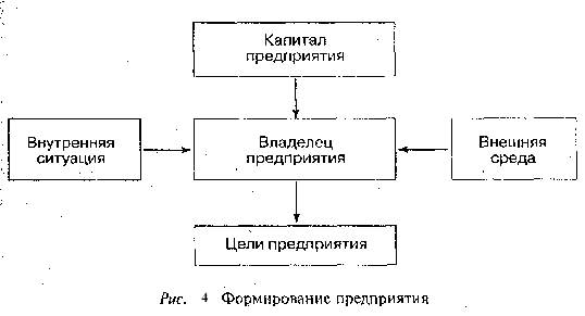 С чисто правовой стороны согласно законодательству Российской Федерации предприятием является самостоятельный хозяйственный субъект, созданный в порядке, установленном законом, для производства продукции и оказания услуг в целях удовлетворения общественных потребностей и получения прибыли. Важнейшими задачами действующего предприятия являются: получение дохода владельцем предприятия; обеспечение потребителей продукцией предприятия; обеспечение персонала предприятия заработной платой, нормальными условиями труда и возможностью профессионального роста; создание рабочих мест для населения, живущего в окрестностях предприятия; охрана окружающей среды: земли, воздушного и водного бассейнов; недопущение сбоев в работе предприятия (срыва поставки, выпуска бракованной продукции, резкого сокращения объемов и снижения рентабельности производства). Задачи предприятия определяются: интересами владельца; размерами капитала; ситуацией внутри предприятия; внешней средой (рис. 4). Право постановки задачи перед персоналом предприятия остается за владельцем независимо от его статуса — частное лицо, государственные органы или акционеры. Владелец исходя из собственных интересов, целей, приоритетов не только обладает правом, но вынужден формулировать и ставить задачи перед коллективом предприятия — в противном случае вместо него это сделает кто-то другой в своих интересах.