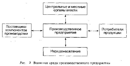 Внутренняя среда предприятия - это люди, средства производства, информация и деньги. Результатом взаимодействия компонентов внутренней среды является готовая продукция (выполненная работа, оказанные услуги) (рис. 2). Внешняя среда, которая непосредственно определяет эффективность работы предприятия, - это прежде всего потребители продукции, поставщики производственных компонентов, а также государственные органы и население, живущее в окрестностях предприятия (рис. 3).