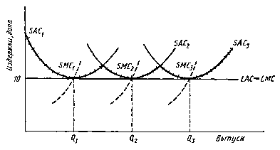 Puc.10. График долговременных и краткосрочных издержек производства при постоянном эффекте масштаба