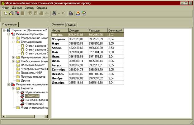 Интервал планирования произвольно определяется пользователем. Результаты оформляются в виде разнообразных табличных и графических отчетов. Данная программа представляет собой демонстрационную версию программного комплекса "Анализ и прогноз бюджетных и социально-экономических процессов в регионе", разрабатываемого Владимирским государственным университетом совместно со Счетной Палатой Владимирской области. В настоящее время работа над этой программой не завершена, поэтому корректная работа и полнота учета всех факторов не гарантируются. Выход окончательного релиза программы запланирован на конец 2003 года.[3] Заключение Информатизация - это многогранный организационный, социально-экономический и научно-технический процесс, направленный на оптимальное удовлетворение информационных потребностей общества. Непосредственной целью информатизации какого-либо округа является обеспечение эффективной информационной поддержки решения политических, социальных и экономических задач развития. Создание информационных технологий на уровне, характерном для индустриально развитых стран, требует огромных затрат на разработку, производство и эксплуатацию технических и программных средств вычислительных систем, а также на поддержание в рабочем состоянии как носителей информации, так и коммуникаций ее обмена. Но, несмотря на все возможные трудности, исследования и разработки в плане информационного обеспечения социально-экономических и политических процессов продолжаются. В курсовой работе рассмотрена Информационная система «Анализ и прогноз бюджетных и социально-экономических процессов региона». Основной целью комплекса является создание единой системы контроля, анализа и прогноза бюджетных и социально-экономических процессов на уровне области. Данное комплексное решение призвано улучшить подходы к пониманию и осмыслению формирования бюджета области, принятию обоснованных решений и, в результате, к обеспечению стабилизации социально-экономического положения региона. Система моделей позволяет оперативно выполнить прогнозные вариантные расчеты при различных значениях сценарных (управляющих) параметров, в качестве которых выступают ставки налогов, минимальная заработная плата, нормативы уровня жизни и другие параметры. Список литературы