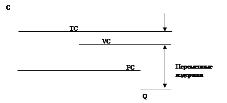 , где: FC – величина постоянных издержек VC – величина переменных издержек TC – общие издержки Q- объем производства С – издержки производства График динамики изменения средних издержек производства по мере увеличения объема производства.