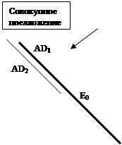 На рисунке противопоставлены кейнсианская и классическая версии реакции приспособления к левостороннему сдвигу кривой совокупного предложения из точки Е0 в точку Е1. В классическом варианте ожидаемый фирмами уровень цен снижается, что ведет к смещению кривой совокупного предложения вниз до состояния нового равновесия в точке Е2 при достижении естественного уровня реального выпуска. Кейнс считал, что сопротивление, которое не позволяет снизить уровень номинальной заработной платы, будет препятствовать смещению вниз кривой совокупного предложения. Поэтому экономическая система будет оставаться в точке Е1, а не скользить вниз – вдоль кривой совокупного спроса. Более того, Кейнс полагал, что даже если бы номинальная заработная плата и цены на другие ресурсы снизить, кривая совокупного спроса все равно слишком неэластична, чтобы дать возможность установиться новому равновесному состоянию, соответствующему уровню реального выпуска. Поэтому, даже если цены на конечную продукцию и на ресурсы будут продолжать падать и в дальнейшем, экономика будет характеризоваться подавленным, депрессивным выпуском и высоким уровнем безработицы в течение длительного периода времени. В условиях катастрофического состояния экономики США и некоторых других стран в период, когда Кейнс писал свою книгу, этот сценарий соответствовал реальностям в гораздо большей степени, чем классическая история саморегулировании. Мультипликативный эффект.В «Общей теории» Кейнс утверждал, что сдвиги в реальных плановых инвестициях представляют собой большую угрозу для общей экономической стабильности, чем можно было бы предположить. Падение объема плановых инвестиций, например, на 100 миллионов долларов, приведет к смещению кривой совокупного спроса влево, и реальная величина этого сдвига, по утверждению Кейнса, будет в несколько раз больше, чем 100 миллионов – например, 400 миллионов, 500 миллионов, а возможно и еще больше. Это явление получило название мультипликативного эффекта. Происхождение мультипликативного эффекта связано со спецификой взаимосвязи между величиной располагаемого дохода и объемов потребления. Кейнс утверждал, сто при изменении величины располагаемого дохода на 1 доллар потребители изменяют объем реального потребления в том же направлении лишь на некоторую часть этого доллара. Именно эту часть он и назвал предельной склонностью к потреблению. Допустим, например, что семейные хозяйства расходуют на потребление 75 центов из каждого вновь полученного доллара, увеличивающего объем их располагаемого дохода. Оставшиеся 25 центов идут на сбережения. В этом случае предельная склонность к потреблению равна 0,75. При такой величине предельной склонности к потреблению увеличение располагаемого дохода во всей экономике, скажем, на 100 миллионов долларов, приведет к приросту совокупных расходов на потребление в объеме 75 миллионов долларов. Аналогичным образом уменьшение величины располагаемого дохода на 100 миллионов долларов вызовет падение объема потребления на 75 миллионов долларов. Последствия сокращения плановых инвестиций.Проследим, к чему приведет уменьшение плановых инвестиций на 100 миллионов долларов, если предельная склонность к потреблению составляет 0,75. Для примера представим себе, что это сокращение выразилось в замедлен