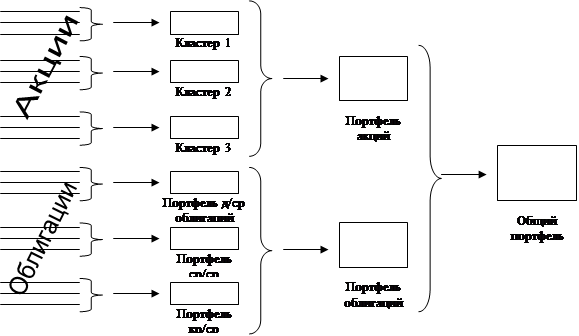 Две ценные бумаги с наименьшим расстоянием объединяются в кластер, доходность которого вычисляется как средняя арифметическая доходностей этих ценных бумаг, после чего процедура расчета повторяется. Процесс объединения в кластеры прекращается, когда минимальное расстояние между группами превысит критическое значение: