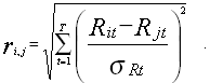 где m – номер периода, sRm – среднеквадратическое отклонение доходности за период m. Критическая величина разбиения предполагается равной квадратному корню из количества периодов T, то есть средней величине евклидового расстояния: