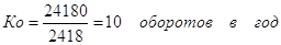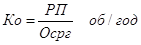 Коэффициент оборачиваемости ОС определяется делением годового объема реализованной продукции в денежном выражении на среднегодовой остаток ОС. РП – годовой объем реализованной продукции. Осрг – среднегодовой остаток ОС.