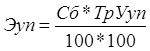 Экономия условно-постоянных расходов рассчитывается по формуле: Сб – себестоимость продукции в отчетном периоде в руб. Тр – темпы роста объема продукции в плановом году в %. Ууп – удельный вес условно-постоянных расходов себестоимости отчетного периода в %.