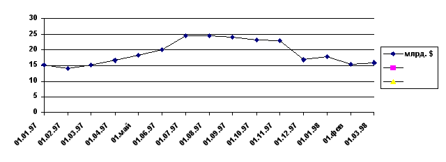 Все это неизбежно привело к снижению за 1997 г. внешнеторгового сальдо на 6,8 млрд. долларов. При сохранении подобной тенденции конвертируемость рубля обречена на неминуемую гибель в ближайшем будущем. Некоторые американские эксперты считают, что при нынешнем сложении ситуации обратимость российской валюты потерпит абсолютный крах уже в середине 1998 года. Хотя по данным Центрального банка в течении марта его валютные резервы пополнились на $600 млн.