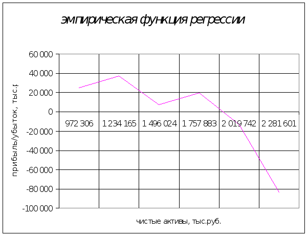 Правило сложения дисперсий проверено: общая дисперсия и сумма межгрупповой и средней внутригрупповой дисперсий совпадают. Из полученных данных можно сделать вывод, что на 29% вариация прибыли банков обусловлена различиями в величине их активов, а на 71% - влиянием прочих факторов. Таким образом, факторный признак (чистые активы банков) имеет среднее влияние на результативный признак (прибыль/убыток). Пункт №3Измерить степень тесноты связи с помощью корреляционных отношений, проверить возможность использования линейной функции в качестве формы уравнения связи. В