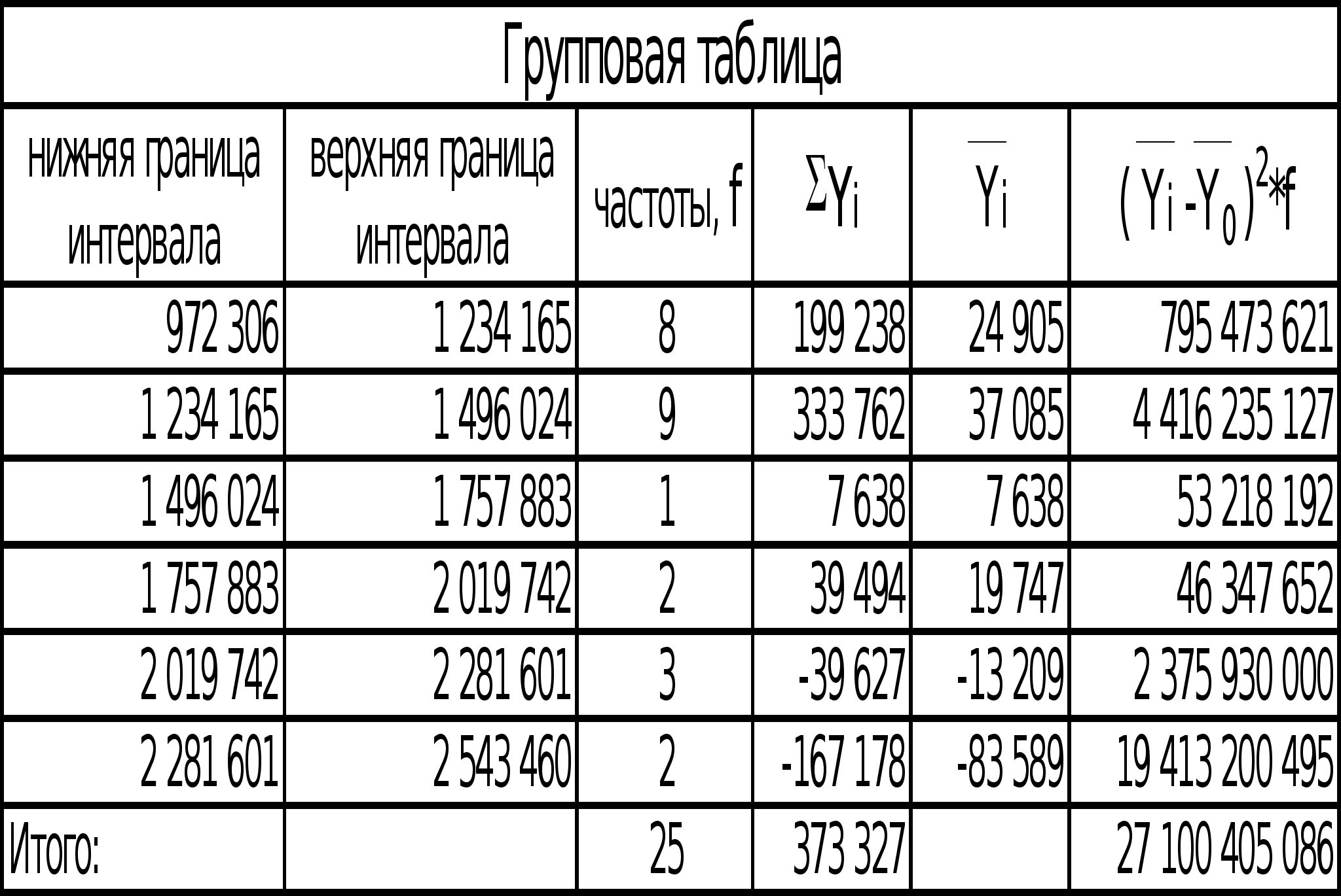μген.ср. = ((2*(1- n/N))/n) Где 2 – дисперсия, n – объем выборочной совокупности, N – объем генеральной совокупности. N=n/0,1 n=25 N=250 2= 200 301 737 920 Xср. = 1 506 994 (я взял дисперсию и среднюю, рассчитанные по однородной совокупности по не сгруппированным данным) μген.ср.= 84 917 Xген.ср. = 169 834 Xср.– Xген.ср.= 1 337 161 Xср. + Xген.ср.= 1 676 828 1 337 161 ≤ Xген.ср. ≤1 676 828 - искомый доверительный интервал В исследовании все размерные величины измеряются тысячами рублей. По причине нехватки места размерность после каждой величины не приводиться. Задание №5Проанализировать зависимость результативного признака от факторного признака. Пункт №1Установить факт наличия корреляционной зависимости с помощью групповой таблицы и ее направление, дать графическое отображение связи.