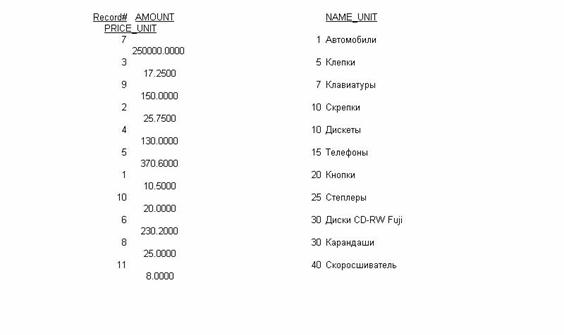 Рисунок 4.2.1 – Результат фильтрации по полю supplier. Создание индексных файлов в базах данных преследует цель ускорения поиска записей и для упорядочения записей в таблицах. Вообще в FoxPro существуют 2 типа индексных файлов: *.idx (обычный индексный файл) и *.cdx (составной индексный файл, содержащий несколько индексов). В нашем случае требуется произвести индексацию по одному полю – полю “Количество товара”, поэтому создаем обычный индексный файл indtab.idx в папке проекта с помощью команды: INDEX on amount to C:\MY_WORKS\TRANSF~1\MYPROJ~1\indtab Следует отметить, что такое индексирование проводится только по возрастанию. Отобразим полученный результат с помощью команды LIST LIST amount, name_unit, price_unit Полученный результат отображен на рисунке 4.2.1
